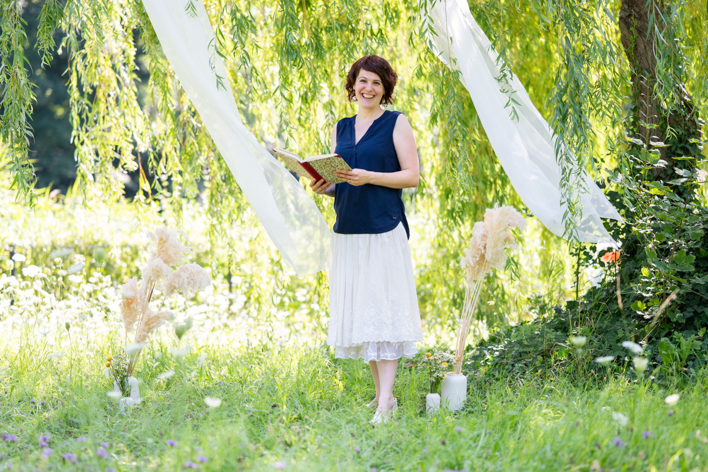 - Am Tag der Erneuerung eures Eheversprechens setze ich eure Vorstellungen um und begleite euch und eure Gäste durch die Zeremonie, damit wir eure Liebe und Verbundenheit nochmals sichtbar machen und hochleben lassen.